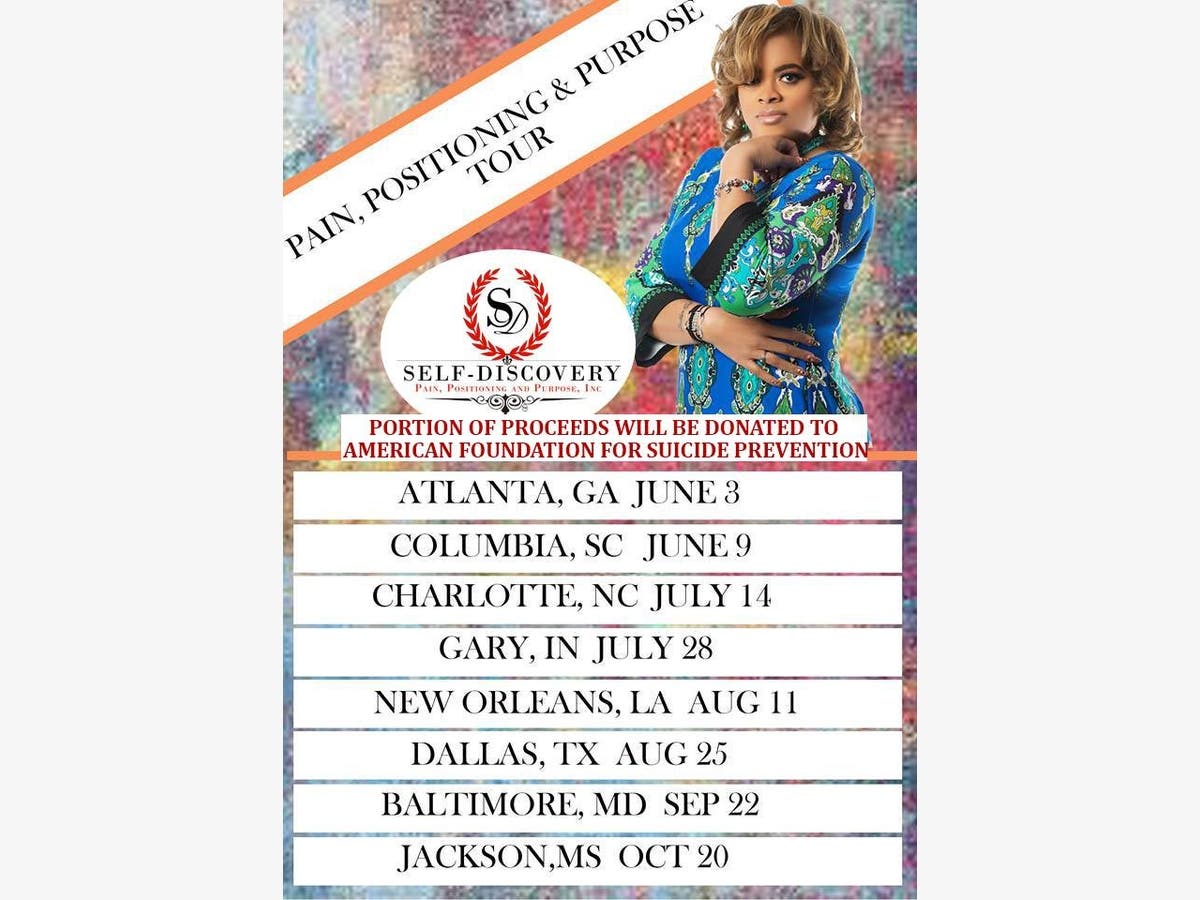 The Self Discovery: Pain, Positioning and Purpose Tour will be an educational, empowering and inspirational forum for individuals and families struggling with the causes and effects of mental illness, depression and suicide.
