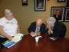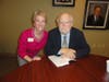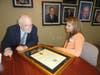 Frances Callun came with her personal copy of “To Dance With the White Dog” and had Kay sign it for the third time. He had first signed it for her in 1993. She also purchased a copy of his new book for him to autograph. “I have all of his books,” Callun said. Jane Broome bought two copies, one for herself and her English professor daughter. She carried a copy of the movie to lend to Bill Crissey of Gwinnett Gallery, who framed the proclamation and key. Michael Hopkins, who like Kay is a graduate of LaGrange College, posed for a picture with the author to submit to the alumni newsletter.