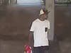 The suspect is described as a black male with a short afro style haircut, in his early to mid-20’s, 5’9” to 5”11,” weighing 165-170 pound, wearing a white short sleeve tee shirt with a single black pocket on the left side of his chest, black jeans with what appears to be gray camouflage markings; and red sneakers, possibly Air Jordan’s.