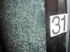 Shattered glass was still on the sidewalk outside the coin laundry, while an investigative evidence marker indicated where a bullet hit another laundry window.
