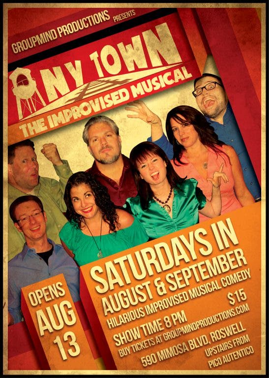 Their first production, IMPROV MONSTER, has earned rave reviews on Yelp and sold out three of its first seven shows in the Events @ 590 space in historic Roswell. Now the company is unveiling a new show, ANYTOWN: The Improvised Musical, in their mission to bring a new brand of improv comedy to sophisticated OTP audiences. The 90-minute show will run every Saturday at 8pm starting August 13, for an initial 8-week run.