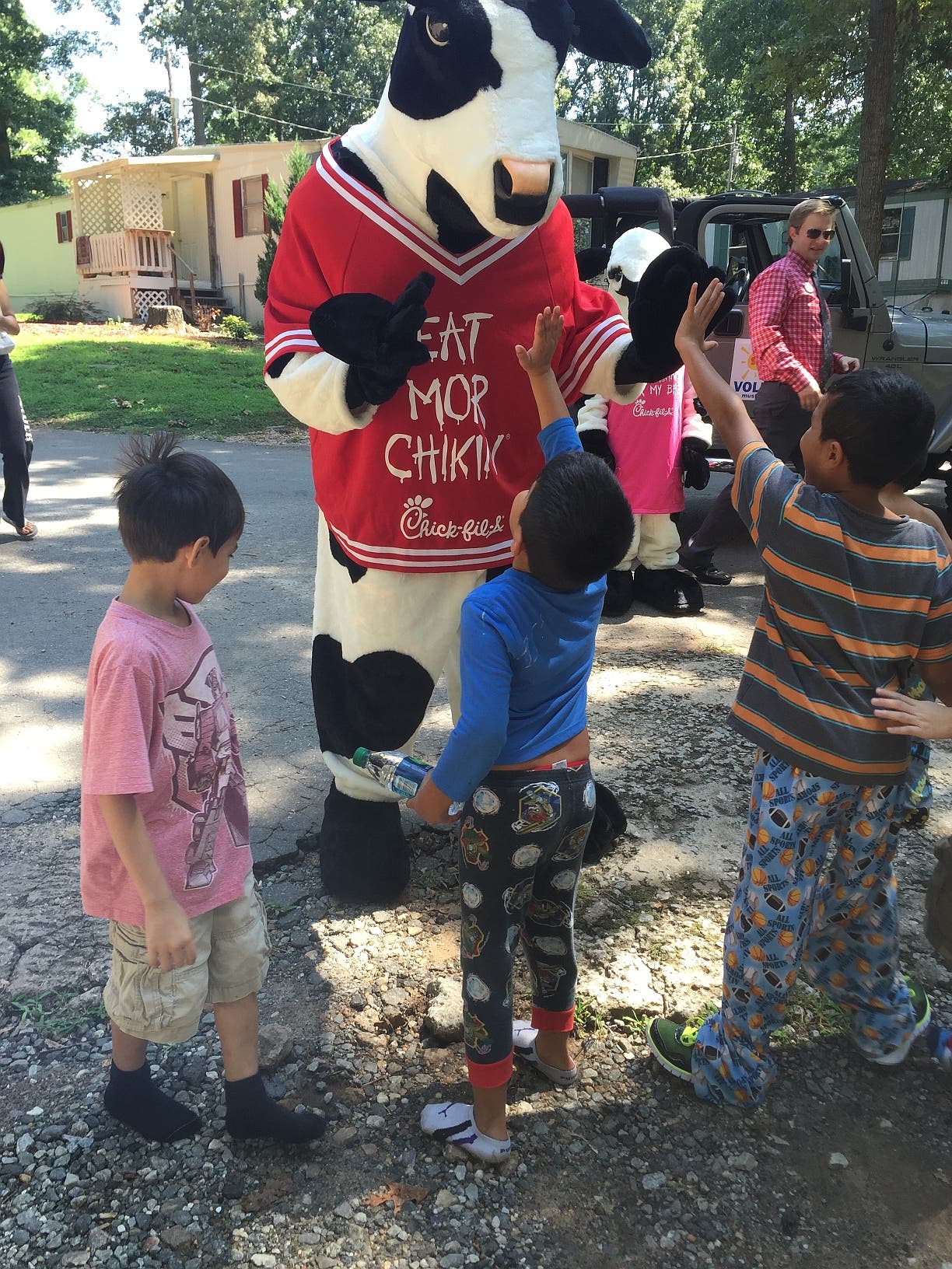 Restaurant owners and their teams not only provided the meals, but also drove the routes with MUST volunteers and staff, serving the meals at apartment complexes, mobile home communities and parks where children in need gather daily to receive a free sack lunch from MUST. Chick-fil-A also brought a “cow herd” – which includes several of their famous cow mascots – to many locations to bring even more joy to the children. In addition, Coca Cola donated 7,000 bottles of Dasani water during the hot summer mid-day meal.