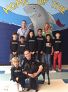 Photo 3: from left, to right (back row), Matthew White, Martin Neuhaus (Shakerag Elementary Principal), Aghastya Raavi, Disha Kumar, Prasad Shetye, Laurie Chans (Shakerag Assistant Principal) Sanjay Ramjee, Ernie Chan; front row: Caden Kelly, officer Elizabeth Roberts and Kyra
