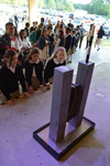 Photo 2: Students from Perimeter School view the structural steel remnant from the World Trade Center.
