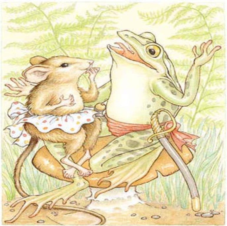 Froggie must save his beloved, Miss Mousie, from that dastardly villain, Tom the Cat and his two evil henchmen, Bad Blood Bonnie and Retched Rachael. Our beautiful young heroine, Miss Mousie, has been forced to accept a marriage proposal by Tom in order to save her Grannie Rat. It is up to Froggie and his friends in Froggie Bottom, to stop the marriage and save Grannie before it is too late.
