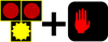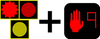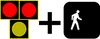 1. After the button is pushed, the yellow light flashes on and off, warning drivers to slow down. The red hand tells pedestrians not to walk.