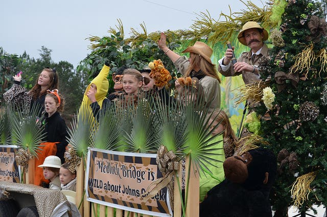 The parade, which celebrates the founding of the city of Johns Creek in 2006, typically draws about 10,000 spectators lining the parade route on State Bridge Road.