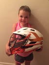 Ella Young is pictured holding a Team Lax for Leukemia helmet.