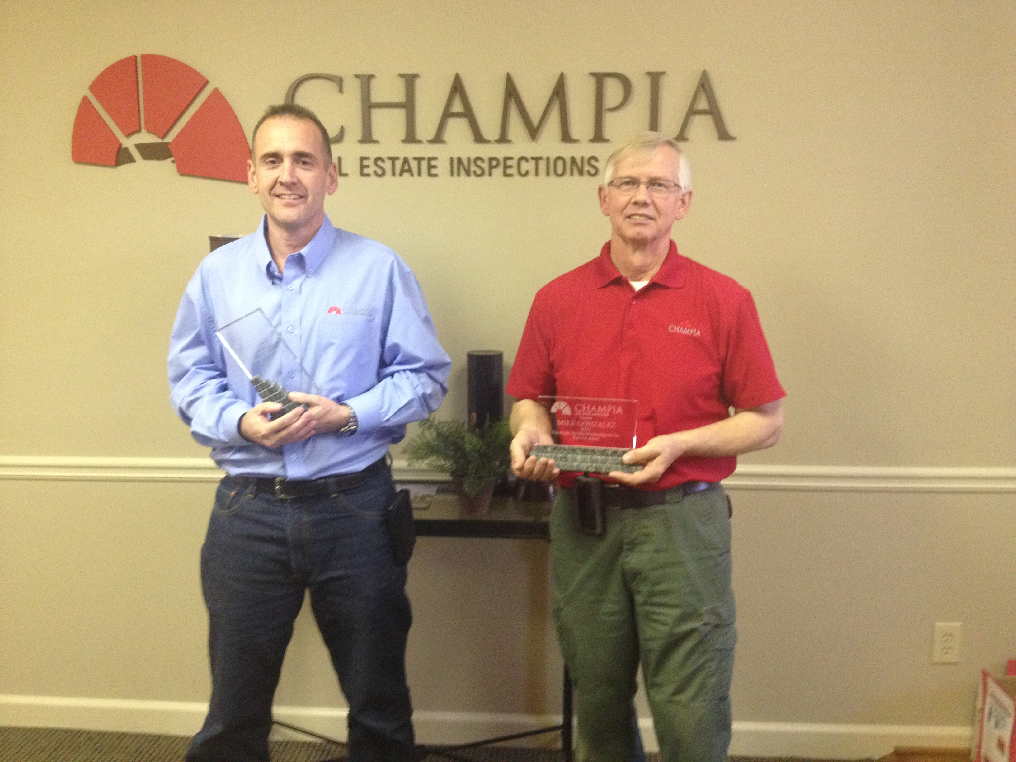 Atlanta, GA --- Today Champia Real Estate Inspections announced that Mike Gonzalez is their 2013 Employee of the Year, and Joe Niehuser is their recipient of the Outstanding Customer Service Award.