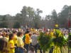 Helicopters passed overhead during the 2 p.m. service, and cars whizzed by on Stilesboro Road. If these passersby had taken notice, they would have seen men dressed in yellow button down shirts, girls wearing yellow nail polish, kids in yellow soccer jerseys, and dozens of boys sporting newly shaved mohawks. They would have heard crying and laughter and music, and they would have smelled grass and dirt mixed with the scent of yellow flowers and latex balloons.