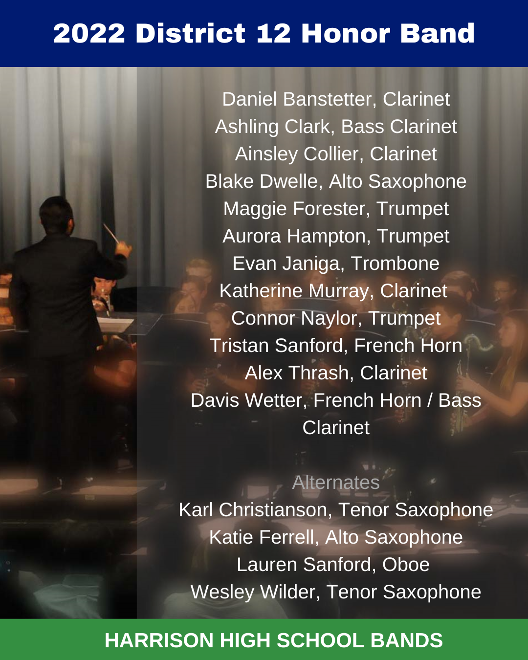 Named to the District 12 Honor Band from Harrison Bands are: