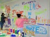 Either way, the teens at the center didn’t seem to mind any lack of artistic ability on Thomas' part. He helped out by putting his handprints in the center of a collage, alongside charter members of the center.