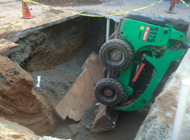 Bobcat Operator Escapes After Equipment Plummets into Hole