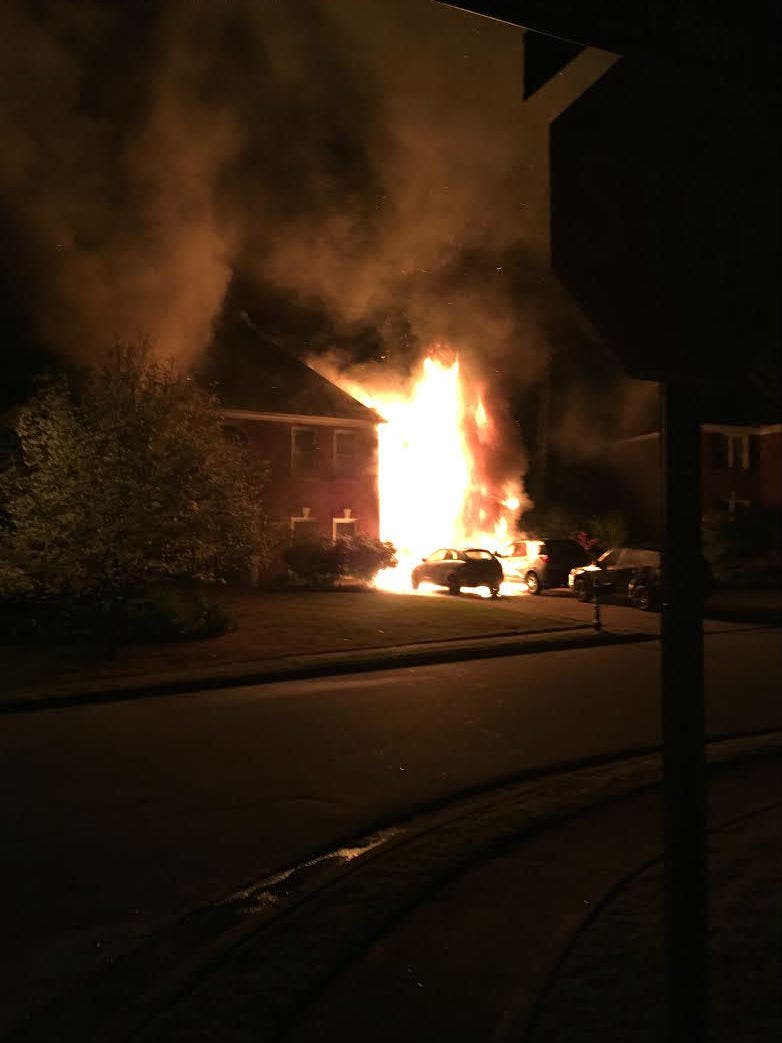 They arrived to find heavy fire showing from the garage and attic of the two-story wood frame house and an SUV parked in the driveway engulfed in flames.