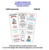 According to the library system website, 5,000 customized bookmarks per branch for a business would cost $300, plus a one-time $25 fee for the first order.
