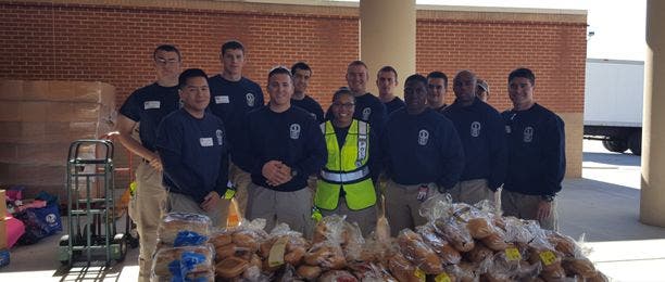 For five hours, the recruits and staff helped supply about 300 families with meals.