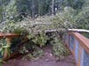 The storm on July 5th caused serious damage to the trail. A tree came crashing down and sliced through part of the boardwalk. After assessing the damage, the area was closed to the public because it was deemed unsafe.