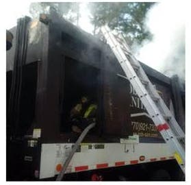 Gwinnett firefighters were called at 10:37 to the fire in the back of a sanitation truck that was driving through Lawrenceville.