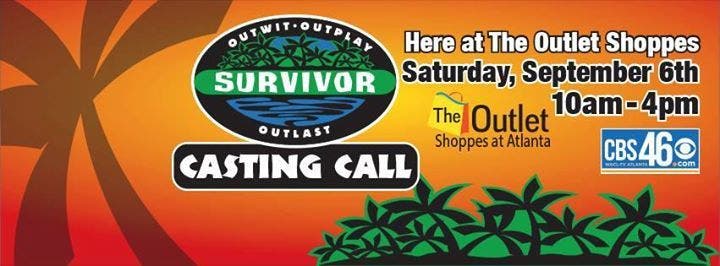 CBS46 and The Outlet Shoppes at Atlanta are holding a Survivor casting call forΒ from 10 a.m. to 4 p.m. Sept. 6. The outlet is located at 915 Ridge Walk Pkwy. in Woodstock.