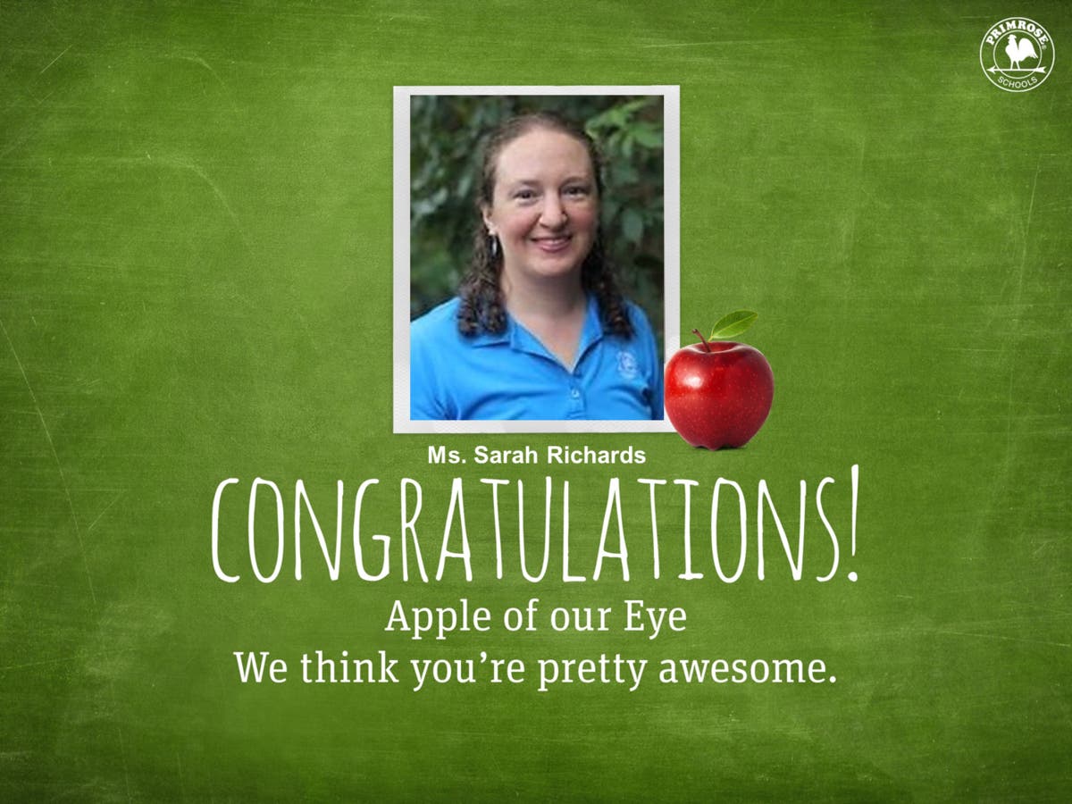 Primrose School of Five Forks honors Ms. Sarah Richards as the January Apple of Our Eye!