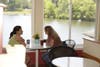 Denise Moon has already been here once today. Earlier, she and her husband came over for coffee. Moon lives on Lake Lucerne and says she is happy that Alcove is here. She’s here now with her friend Gloridel Hildago. They’ve just come in from taking a canoe over for some tea.
