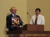 #1060 Colonel John Powers presents Principal Alex Porto with a picture of the chapel.