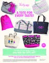 - The monthly customer special is 1/2 off selected totes when you spend $31 (shown on pg 44 of the catalog.)