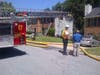 Firefighters worked fast and kept the flames from spreading into the adjoining duplex unit on the left. Radiant heat from the fire caused minor cosmetic damage to the vinyl siding on a neighboring building to the right. Firefighters extinguished the main body of fire and flowed water on the exposure building to prevent further extension or damage. The fire caused extensive damage inside the unit or origin and sent smoke throughout.