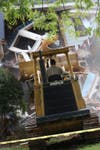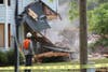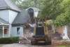 At 9 a.m. on the dot, a bulldozer ripped through the garage to begin the systematic demolition of the so-called Lilburn Meth House, where three young children perished last year in an explosion and resulting fire caused by a meth-making operation.