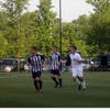 The third goal of the opening half came at the 12:45 mark, as center fullback Matt McGlamery lined up at the offensive end of the field and scored off a throw-in by Brent Hansen. Pace defenders were unable to clear the ball as it landed in traffic in the middle of the penalty box, and McGlamery put a clean header on it, re-directing the ball into the upper right corner of the goal. Hansen was a weapon for the Stars all game long with his ability to throw the ball into the box from just about anywhere across the midfield line.