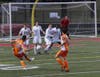 Milton's keeper saved his teammate from an embarrassing gaffe in the second half. A Milton defender headed a cross back for his keeper to catch. But in a case of miscommunication, the goalie came out of his position and was forced to scramble back to save the ball right on the white goal line painted on Milton's artificial turf.