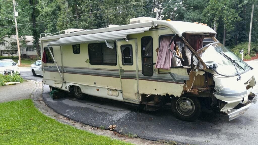 Police say David Newman, 17, was driving the RV on Five Forks Trickum Road, near Chesapeake Drive in Lilburn, when he struck the rear of a car in front of him.