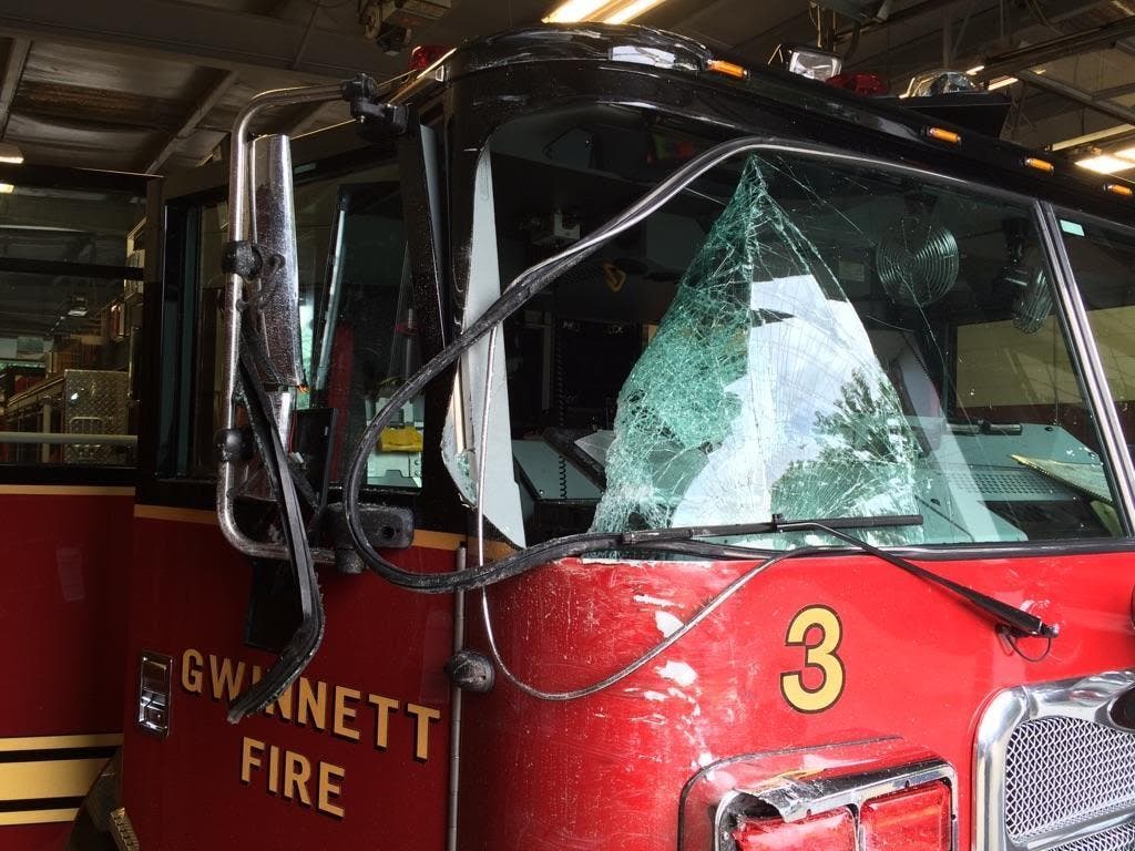 After that collision, Newman's vehicle traveled into the next lane and struck a Gwinnett County fire truck, according to police.