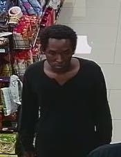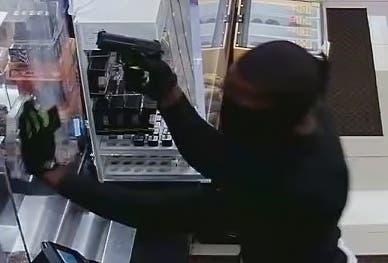 A tall, thin black male who was wearing a dark blue long-sleeved shirt and pants. He was holding a .40-caliber pistol, which he fired once during the robbery.