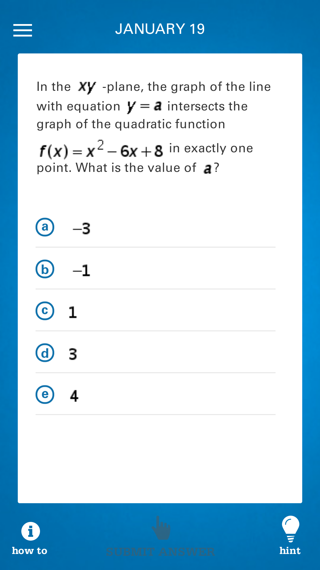 In many ways, I was OK with that. It doesn’t matter how he does at all, and he has enough mess on his plate that he doesn’t need to add ‘freaking out over taking the SAT three years early’ to the mix. Even if he bombed it, there was a ‘no harm no foul’ kind of thing going on. He would have that experience to prepare him when he took it for real later in high school. I let it slide. Then about a week before hand, I decided that he at least ought to look at some questions. I managed to find an “SAT Question of the Day” App for my phone, developed by the official College Board people, and free of charge.