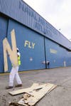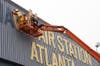 Construction crews remove signage from the last reminder of the existence of the former Naval Air Station Atlanta in Marietta.
