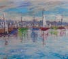 Two of his significant characteristics, usually underrepresented in the the impressionistic works of others current artists, are the boldness of color choice and this vibrating, life-like movement of the canvas. Draped shamelessly in the blues and purples, his landscapes are beyond sensual purity. The life-like motion passively emblazoned within the definite application of the palette knife creates a vibrancy hard to ignore.