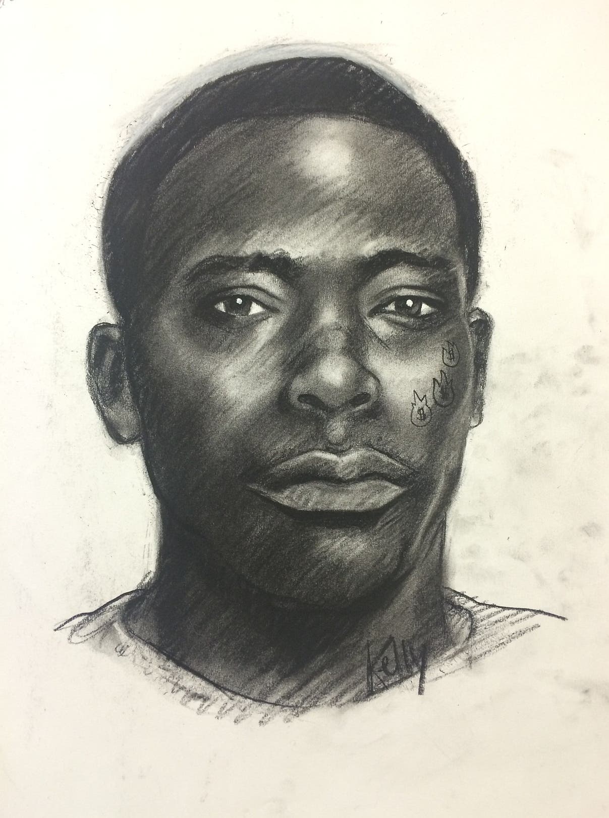 The suspect is described as a black male weighing approximately 165 lbs. who was wearing a black vest, white shirt, and dark sneakers. He also has three dollar signs tattooed on his face, according to police.