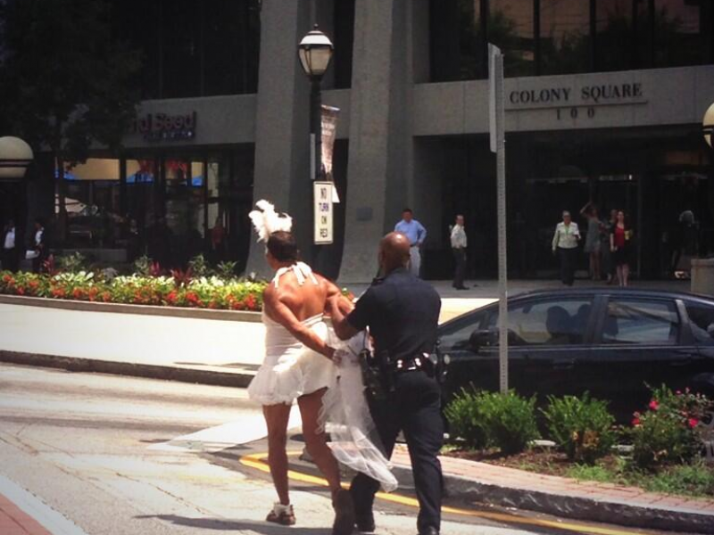 “Baton Bob,” whose real name is Bob Jamerson, was arrested in Midtown on June 26, 2013 while he was celebrating the U.S. Supreme Court’s lifting of the federal ban on same sex marriage outside Colony Square. Jamerson, a flamboyant street performer, can usually be found in Atlanta dressed in a tutu and twirling his trademark baton.