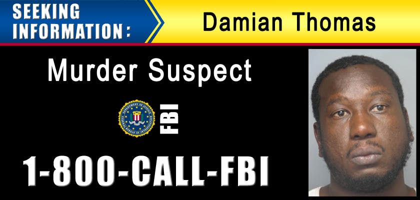 The FBI is offering a reward of up to $10,000 for information leading to the arrest of Damian Thomas.