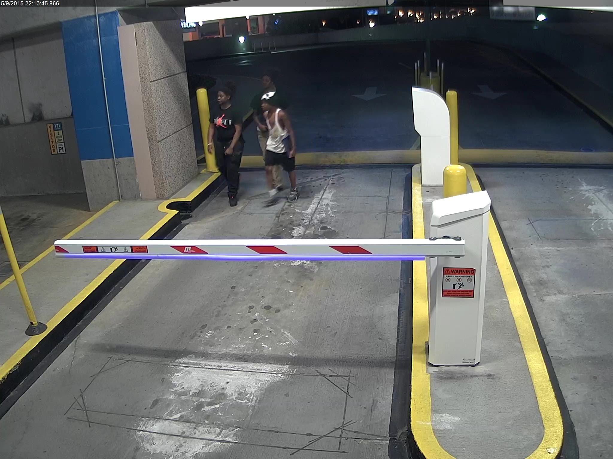 Police recovered surveillance camera footage of the incident and have a description of the suspects. One of the females appears to be wearing a black t-shirt with the word “Jordan” written on the front in red letters, black pants and black tennis shoes, while the second female appears to be wearing a black t-shirt, khaki pants and flip-flops. The male suspect appears to be wearing a white cut off undershirt, black shorts, tennis shoes as well as a “scream mask” on his head.