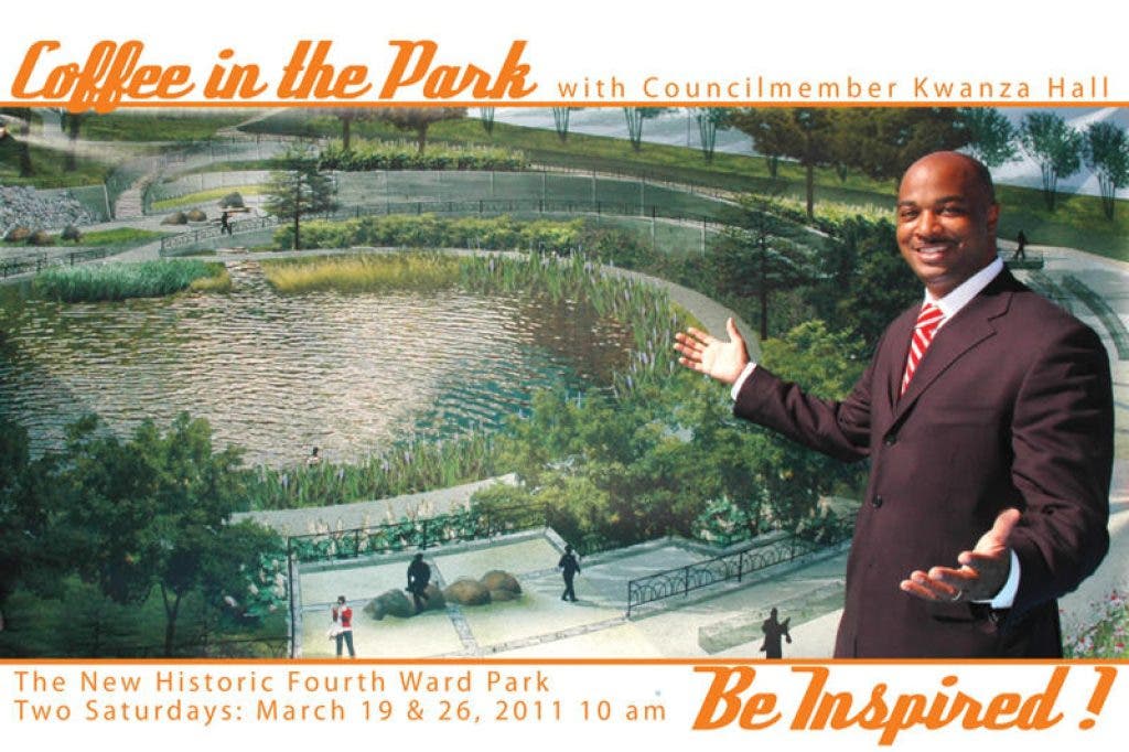 Meet Atlanta City Councilman Kwanza Hall for coffee and doughnuts in the new Historic Fourth Ward Park.
