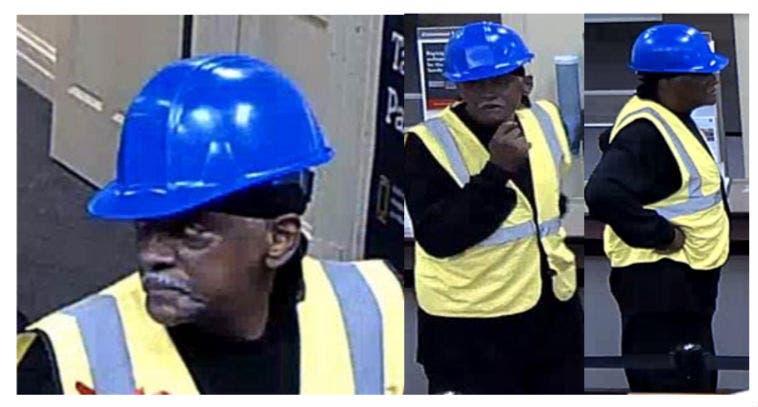 Gwinnett County Police are asking for the public's help in identifying the man who walked into the Wells Fargo at 6155 Buford Hwy. at about 2 p.m., wearing a blue hard hat and yellow safety vest.