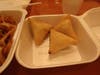 Everything is prepared to order, which was obvious with our orders of samosas. The samosas actually arrived after our entrees because they needed time to cook and were served fresh and hot. The vegetable samosas were filled with the kind of mix you would normally get from spring rolls at Chinese restaurants, but with a definite note of Indian spice, while the chicken samosas had finely minced chicken and the same spring roll mix of vegetables. They were noticeably smaller than other samosas and came with packets of ketchup and duck sauce.