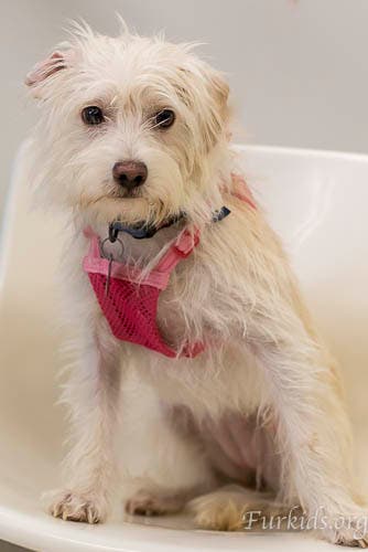 Futura is working hard to trust humans. Furkids rescued Futura from an overcrowded home where the dogs were not getting any socialization with humans. Futura was born into that situation and unfortunately she missed out on the critical socialization period as a pup. Futura is a gentle, little spirit but she is ready to flee at the slightest upset. A sound, a sudden movement, just about anything can send her into a panic. Taking on such a scared little 9-lb. dog is a big responsibility. Futura will come around but it will take time, patience and most of all a very responsible caregiver who will take the necessary steps to keep Futura safe and secure and show her that the world doesn’t need to be such a scary place.