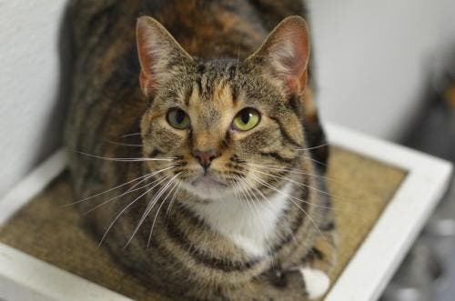 Elegant Emma was rescued from Gwinnett County Animal Services. She is a young kitty with pretty tabbico coloring and markings. Emma enjoys human attention. She likes petting, especially head rubs. Emma enjoys exploring her surroundings and isn’t afraid to go up high to view the world below. She would love to have a cat tree to lounge on and to watch the outside world. If you would like to give Emma a family of her own, apply to adopt her today at www.furkids.org