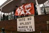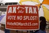 Opponents of the SPLOST have scheduled a second "Ax the Tax" gathering for 1 p.m. on March 13 in hopes of better weather.Β