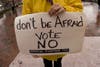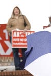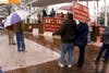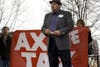 Despite wet weather, a couple dozen Cobb residents gathered at Glover Park for "Ax the Tax" Rally in opposition to March 15 vote for SPLOST.