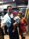 When I stopped by just a few days ago, Kellie was gracious enough to let meΒ interrupt her visit and welcome me in.Β I was excited to meet her and husband Ted Lahey, the new executive chef at Table & Main.Β Thatβs his picture, and heβs holding cute little daughter Mollie while his wife Kellie looks on.Β Cooking up historic Southern flavors and orchestrating a kitchen thatβs well run is a main part of Tedβs life.Β Back in 2003, Ted graduated from Johnson and Wales University and worked for Chef Michael White at the Fiamma Osteria in New York City.Β Tedβs leisure activities including playing with Mollie, kayaking, and gardening.