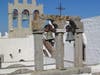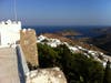 Β That is the monastery dedicated to St. John the Evangelist and Theologian (who is credited with the fourth Gospel and the Book of Revelation - the Apocalypse). It sits as a crown on this high spot of Patmos, built like a fortress to protect the monks and their treasures from the frequent raids of the Saracen pirates. It is surrounded by the small town called Chora which was started by the workers who first came here to built the monastery.
